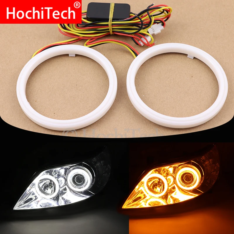 Хлопковое белое и желтое переключение Halo кольца Angel Eye 60 мм 70 мм 80 мм 90 мм 100 мм 110 мм 120 мм авто DRL Eyes с поворотным сигналом