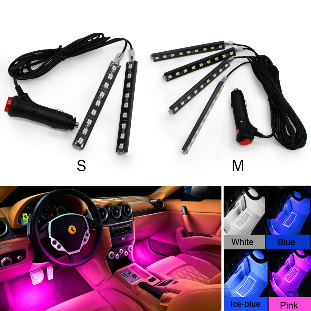 9 светодиодный 2/4 в 1 Интерьер 5050 автомобиля атмосферные огни тире пол ноги полосы адаптер света декоративные лампы