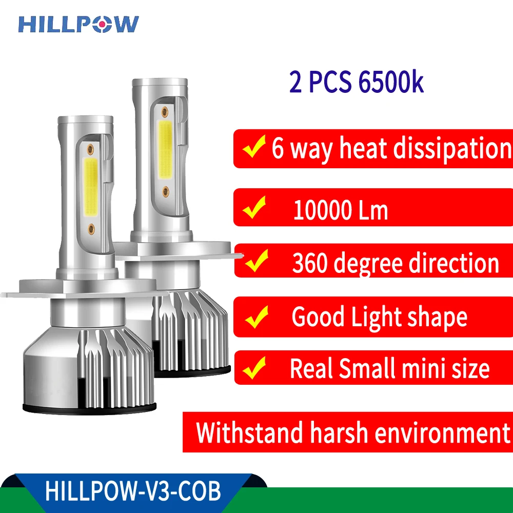 Hillpow автомобильные лампы для передних фар H4 светодиодный H7 H11 H8 HB4 H1 H3 HB3 9006 9007 H13 Авто V3 72W фары для 10000LM стайлинга автомобилей 6500K светодиодный ...