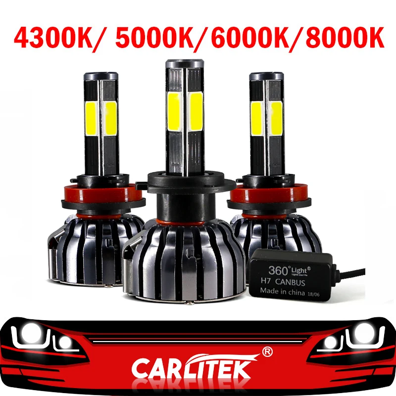 CARLitek 5000 K 4300 K Canbus Led H7 H4 H11 фары автомобиля 4 стороны COB Чип 6000 K 8000 K 9005 9006 HB3 HB4 Автомобильные фары светодиодные лампы