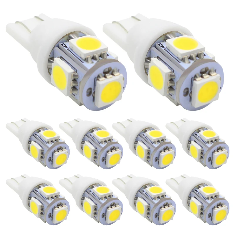 10 шт яркий T10 W5W 5050 5 SMD 194 168 светодиодный клиновидный для салона сбоку на приборную панель, для номерного свет лампы автомобиль стиль белый DC 12...