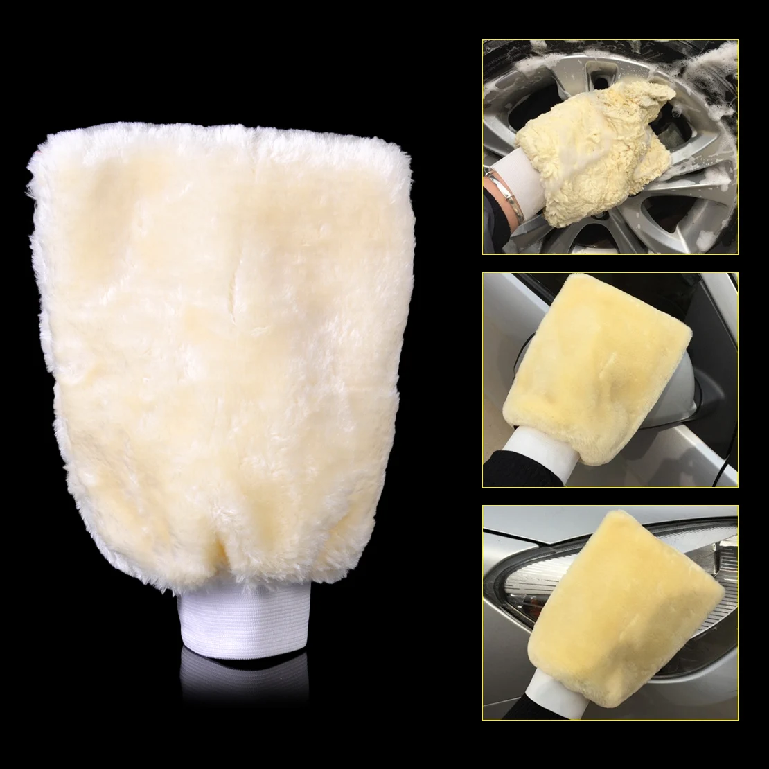 DWCX автомобиля мягкий двойной шерсть перчатки для мытья Ручная стирка инструмент насадка для чистки овчины овечьей шерсти шайба для BMW Audi ...