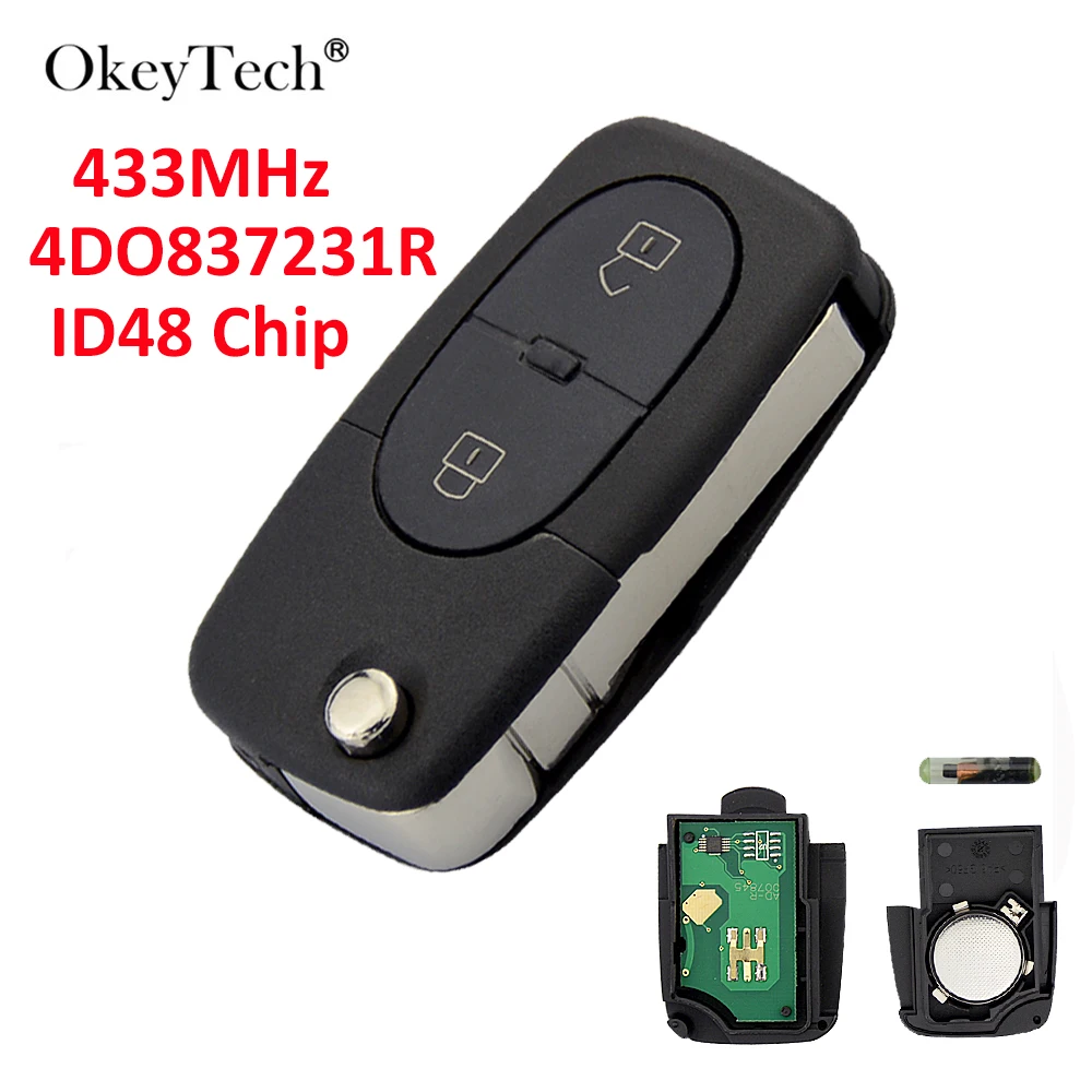 Okeytech для Audi A3 A4 A6 флип складной дистанционную Управление автомобиля брелок 433,92 мГц ID48 чипа 2 кнопки 4D0837231R для Audi