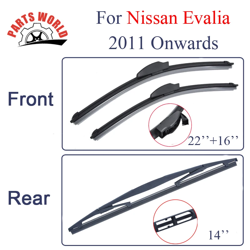 Спереди и сзади стеклоочистителей для Nissan Evalia 2011-высокое качество, поступления 2016 г. ветровое стекло автомобиля аксессуары