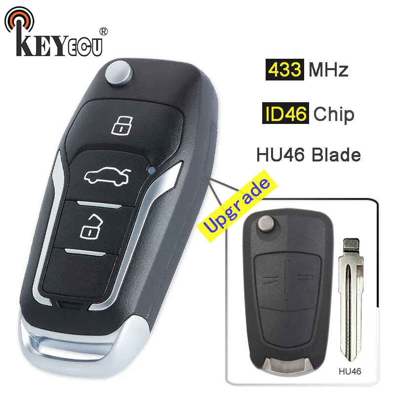 KEYECU 433 мГц ID46 чип 3 кнопки обновлен Flip складывающиеся дистанционного брелок для Opel Antara с HU46 лезвие