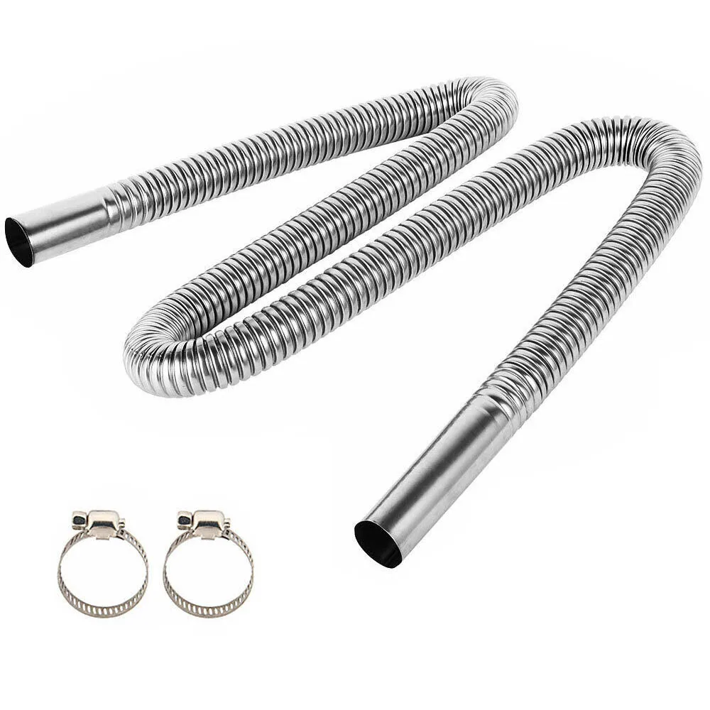 120 см Автомобильная выхлопная труба из нержавеющей стали, гофрированная круглая труба, стояночный глушитель, Дизельный Нагреватель, серебр...