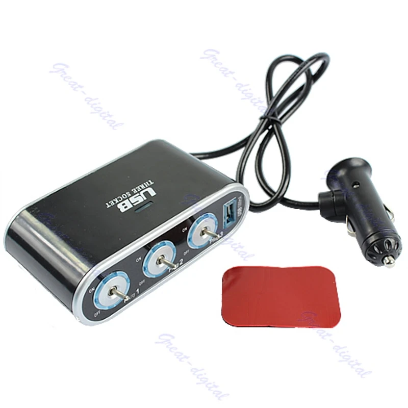 1 шт. автомобильного прикуривателя 3 Way Splitter адаптер DC12V USB Порты и разъёмы Новый