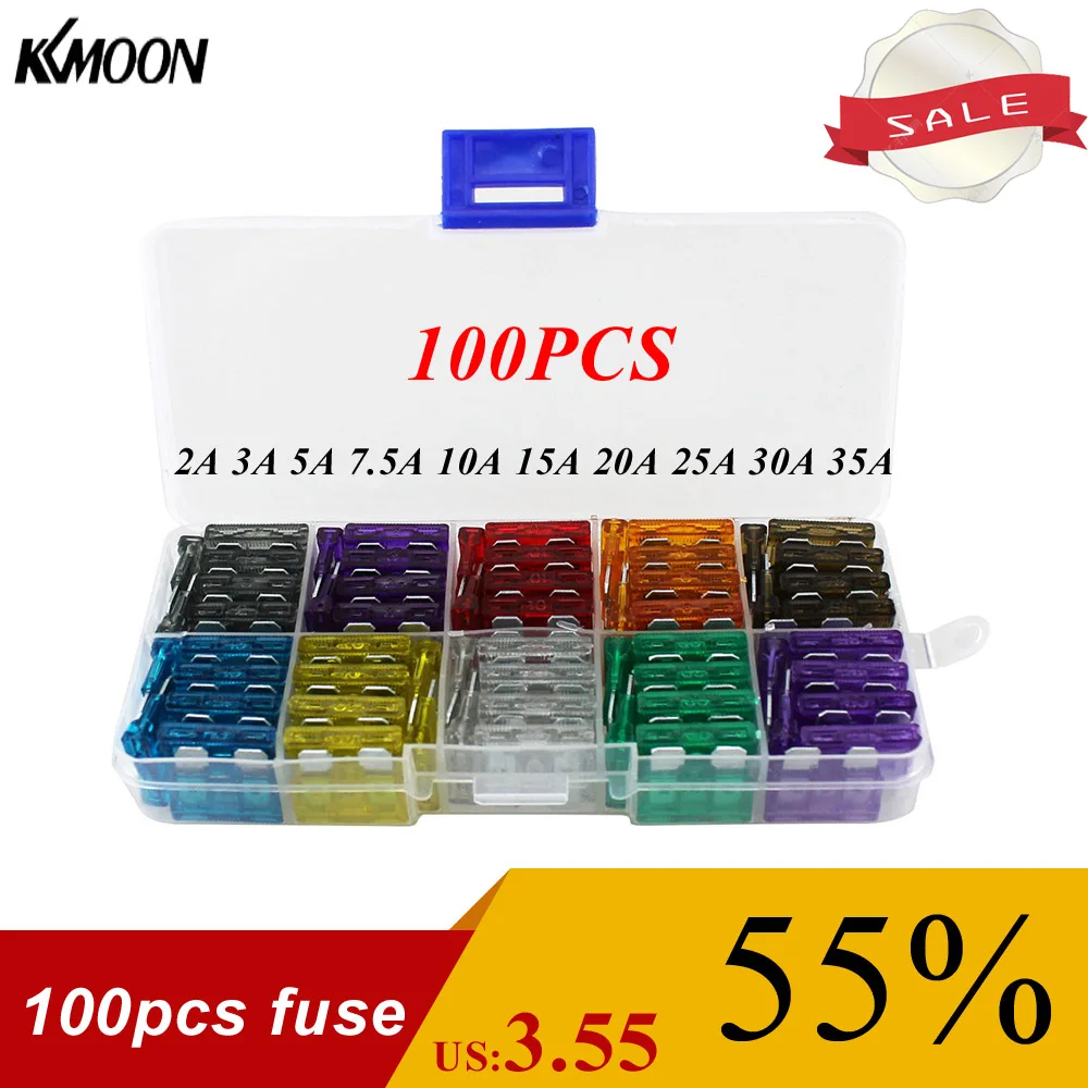 KKMOON 100 шт. 2A 3A 5A 7.5A 10A 15A 20A 25A 30A 35A ассортимент предохранителей автомобиля стандартная Контактная Пластина блок предохранителей для автомобил...