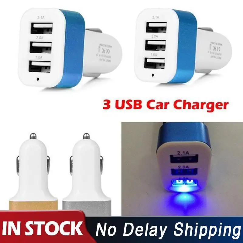 Универсальный 3-Порты и разъёмы USB Автомобильное Зарядное устройство быстрой зарядки Портативный 5 V 2A 2.1A 1A Синий Золотой серебристый для ...