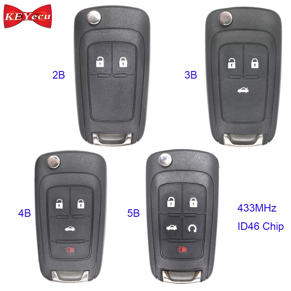 KEYECU для Chevrolet Aveo Malibu Cruze Impala пульт дистанционного управления Управление автомобильный брелок 2B/3B/4B/5 Кнопка 433 мГц ID46 чип