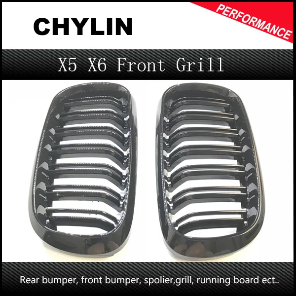 2 шт X5 X6 ABS оформлена двойной планка гриль передняя ноздри Подходит для BMW F15 F16 бампер с м эмблема черный глянец 2015 2016