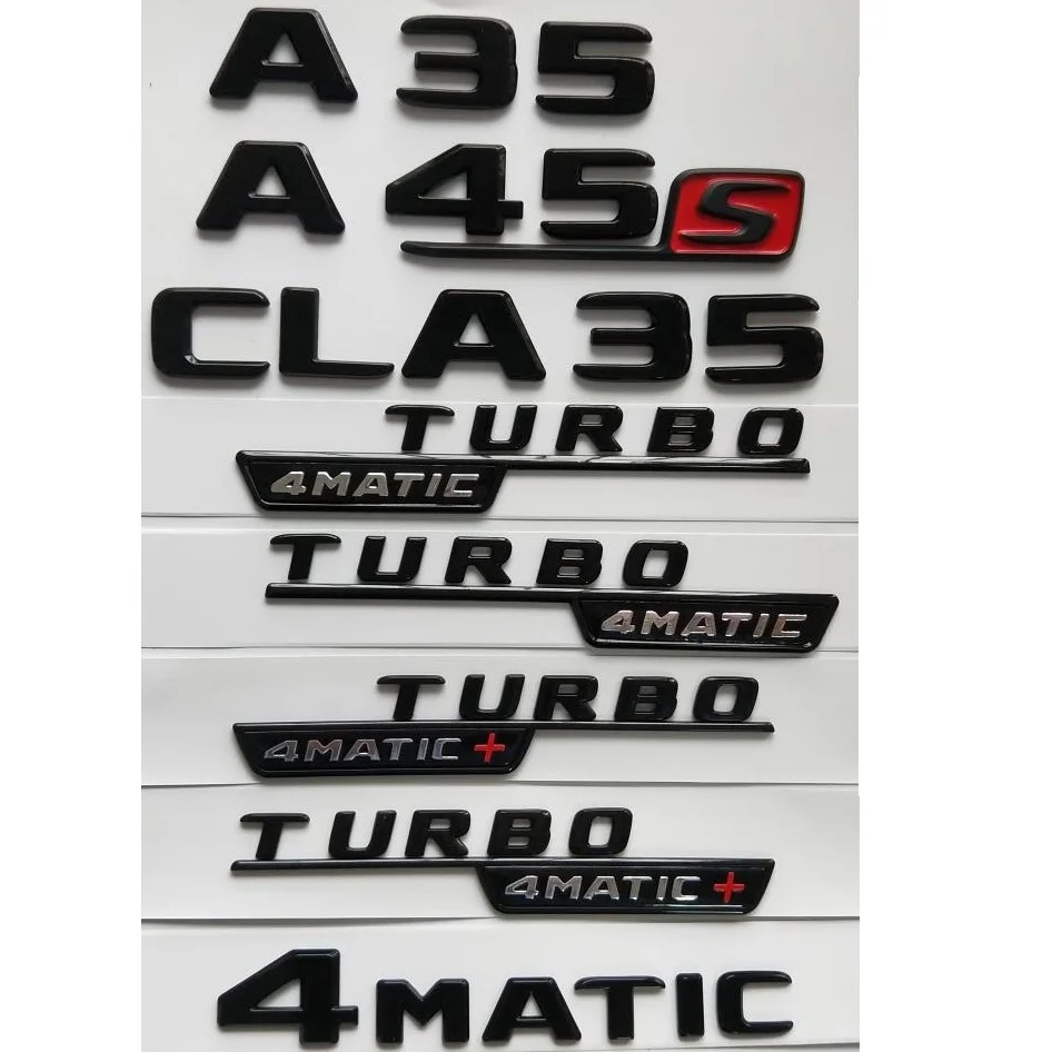 Блестящие черные буквы, значки на багажник, эмблема, значок для Mercedes Benz W177 A35 A45 A45s C118 X118 CLA35 AMG TURBO 4MATIC эмблемы