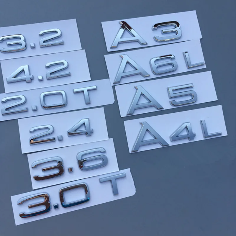 Хром ABS Письмо багажник Знак логотипа Автомобильная наклейка с эмблемой для A1 A3 A4 A5 A6 A7 A8 A4L A6L A8L Q3 Q5 Q7 1,8 т 2,0 2,4 2,8 3,0 4,2 T/T