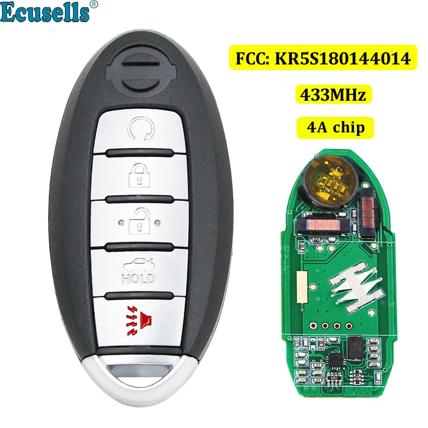 5 пуговицы smart remote key 4 + 1 кнопка FSK 433 МГц PCF7952LTT чип для Nissan Patrol с аварийным ключом