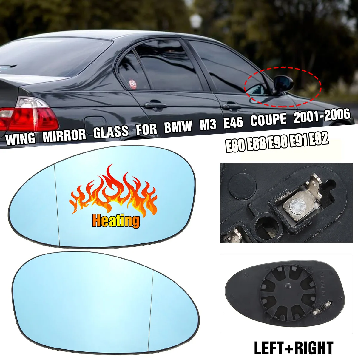 Левое и правое боковое синее с подогревом Электрическое зеркало с широким углом обзора для BMW 3 серии M3 E46 2001-2006 E80 E88 E90 E91 E92