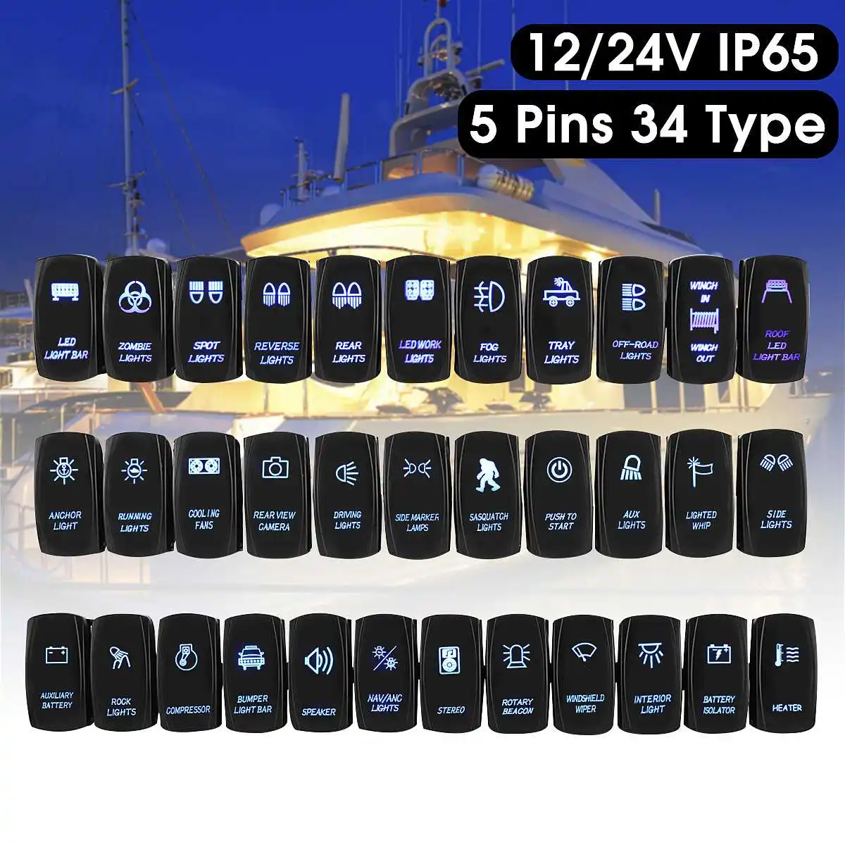 1x12 V/20A 24 V/10A автомобильный лодочный кулисный переключатель ВКЛ-ВЫКЛ 5 Pins синий двойной светодиодный светильник кулисный переключатель