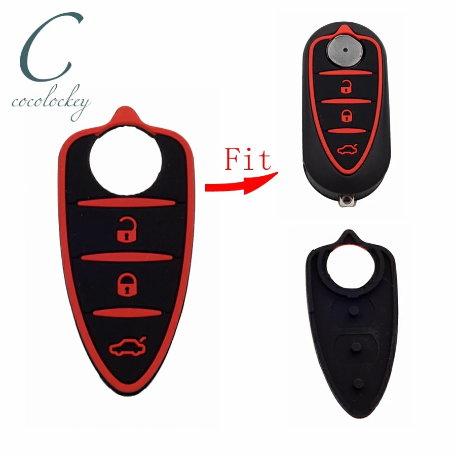 Cocolockey силиконовый резиновый коврик для ключей, подходит для Alfa Romeo Mito Giulietta 159 GTA, 3 кнопки, пульт дистанционного управления, черный и красный цвета