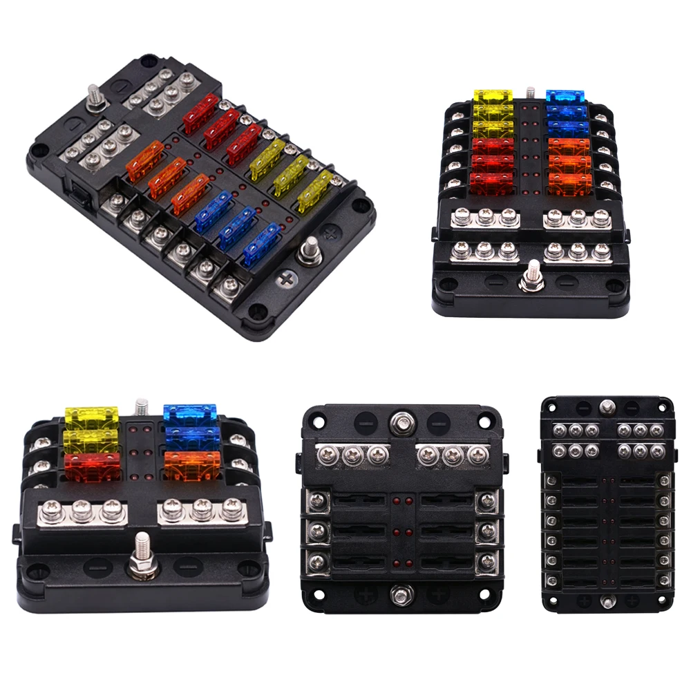 6 way/12 Way Blade предохранитель блок с ATC/ATO предохранитель держатель светодио дный Предупреждение ющий индикатор влагостойкая Крышка для автомо...