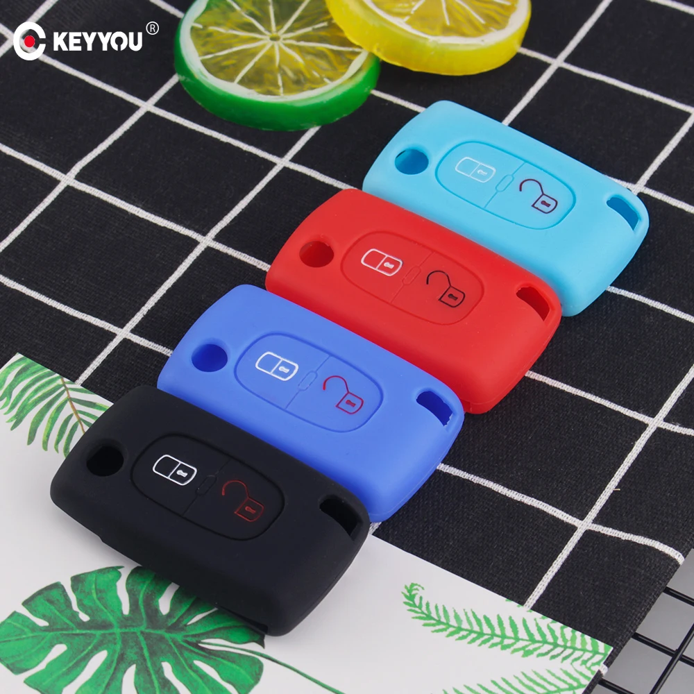 KEYYOU 2 кнопки силиконовый пульт дистанционного ключа защитный чехол для peugeot 107 207 307 307S 308 407 607 для Citroen C2 C3 C4 C5 C6 C8