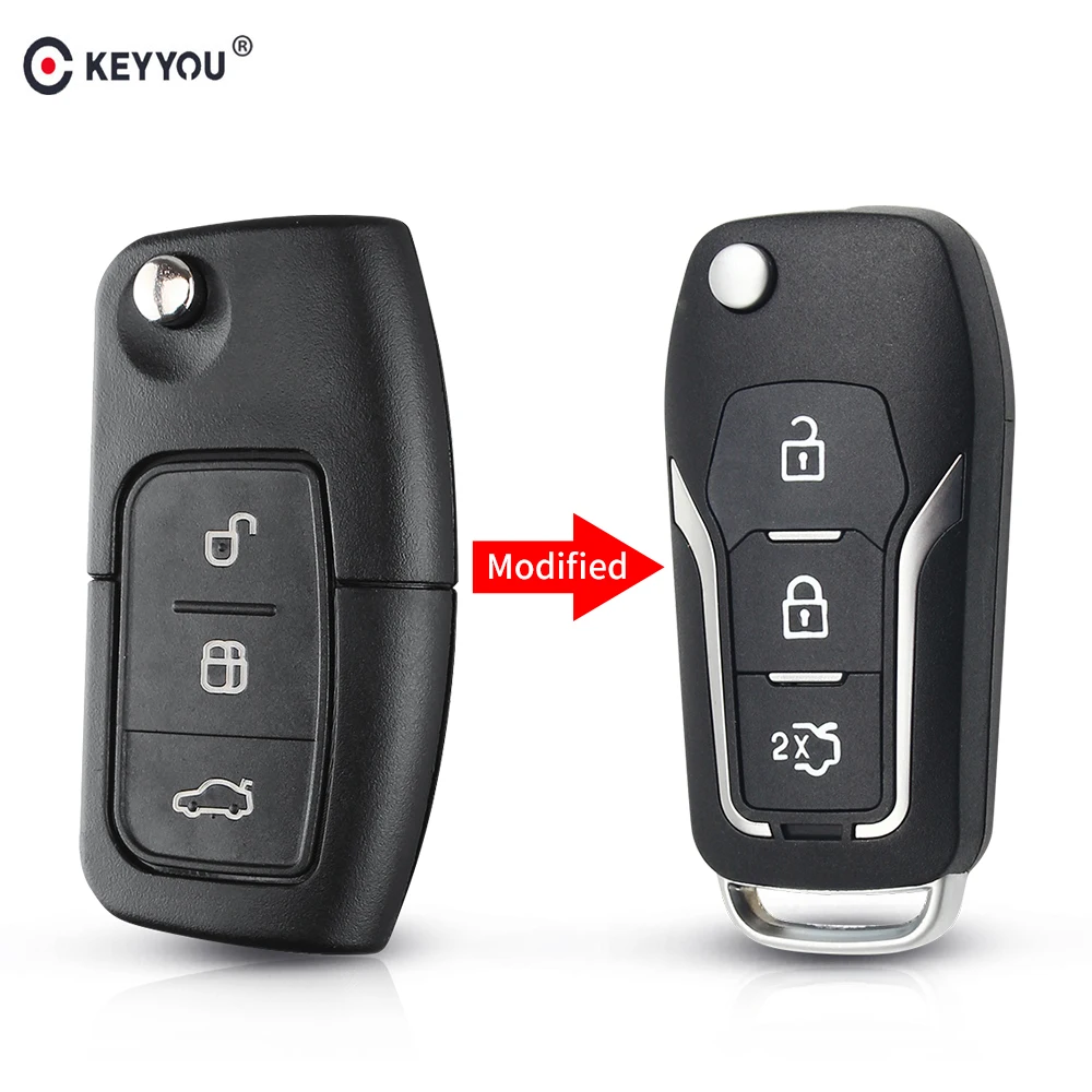 KEYYOU 3 кнопки модифицированный Filp автомобильный пульт дистанционного ключа оболочки для Ford Mondeo Focus Fiesta C Max S Max Galaxy карта для бесключевого дост...