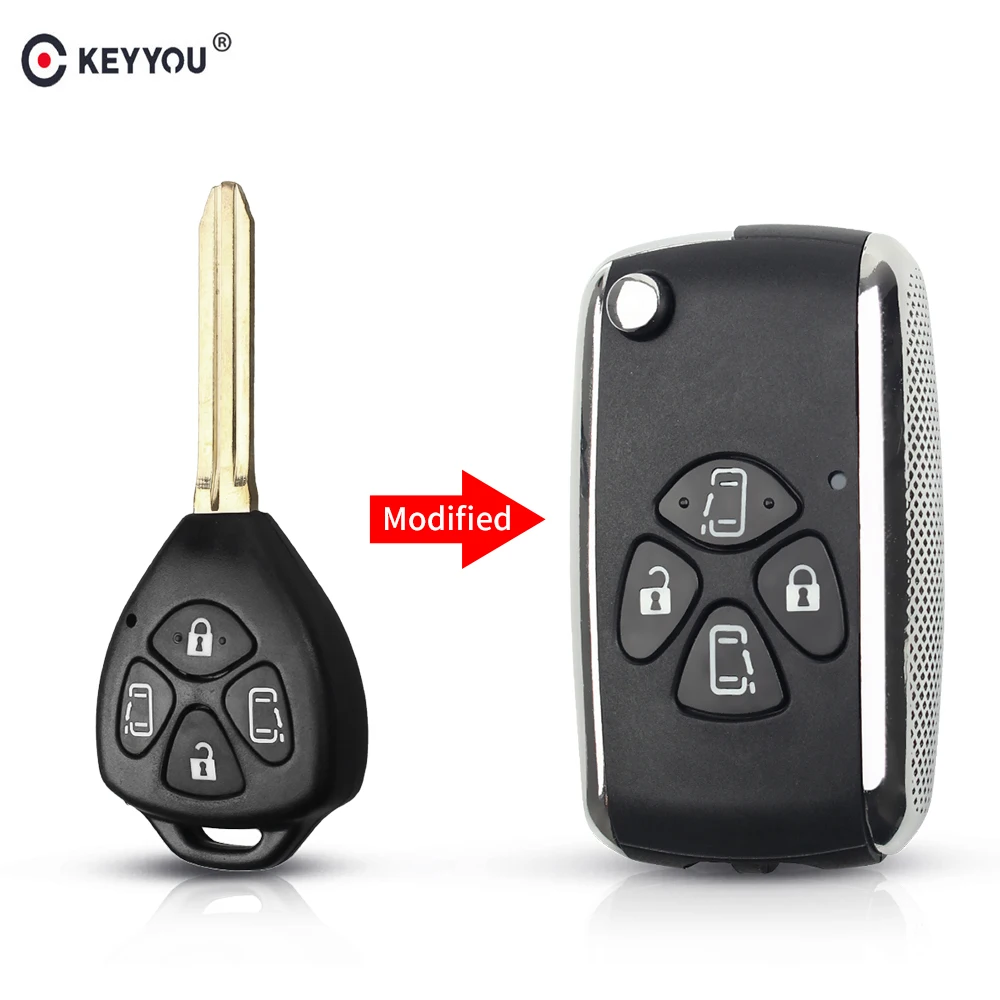 KEYYOU модифицированный для Toyota Corolla RAV4 Yaris Prado Tarago CAMRY Crown Avalon 4 кнопки Toy43 пульт дистанционного ключа оболочки автомобильные аксессуары