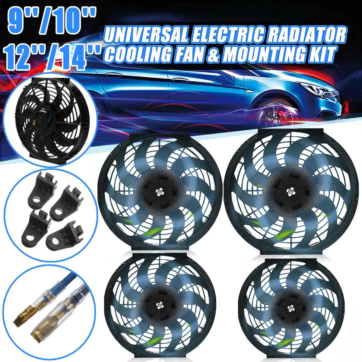 12 В 80 Вт универсальный нажимной изогнутые лезвия Электрический вентилятор охлаждения радиатора с монтажным комплектом 9 10 12 14 дюймов