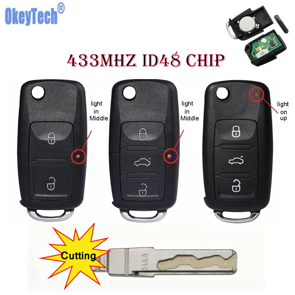 Okeytech 3 Пуговицы 434 мГц автомобиля Дистанционное управление завершена Флип брелок пустой лезвие с ID48 чип для VW/Skoda сиденье 1ko 959 753 г
