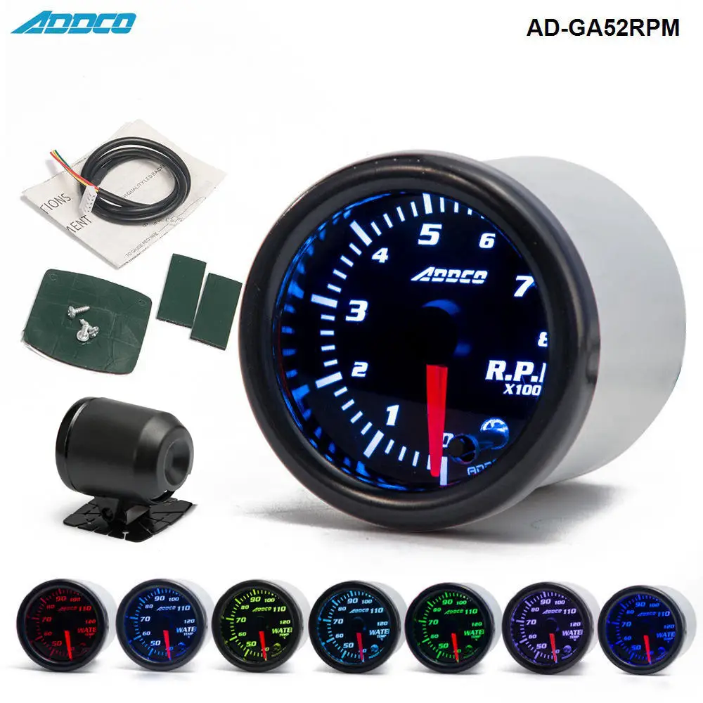 Автомобильный Тахометр, универсальный тахометр с датчиком и держателем, 12 В, 52 мм/2 дюйма, светодиодный индикатор, 7 видов цветов