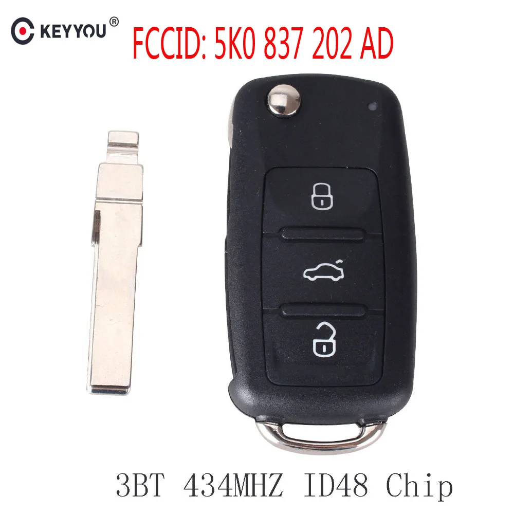 KEYYOU удаленный ключевой 434 МГц ID48 чип для VW Volkswagen GOLF PASSAT Tiguan поло Jetta Жук автомобиль без ключа 5K0 837 202AD 5K0837202AD