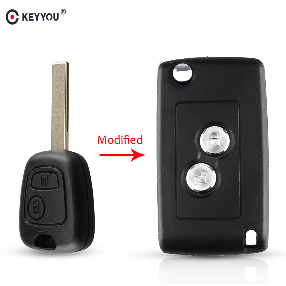 KEYYOU 2 кнопки изменения Флип Складные ключеник автомобилей Бланк Shell для peugeot 307 607 207 для Citroen C1 C3 удаленный ключевой чехол