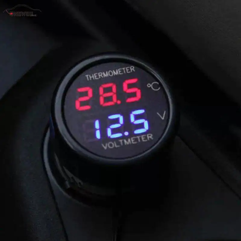 12 В 24 в 2 в 1 DC Цифровой Автомобильный Вольтметр термометр измеритель температуры батарея монитор красный синий светодиодный двойной диспле...