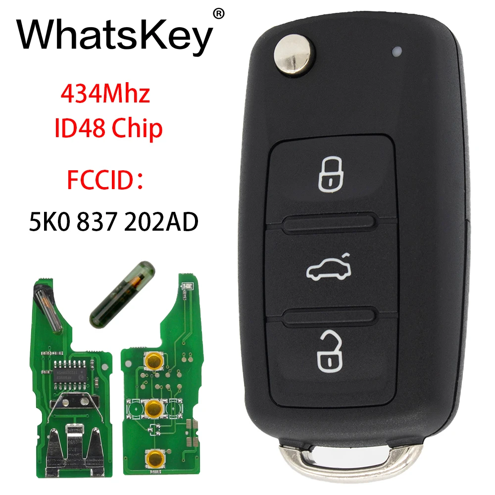 WhatsKey 3 кнопки дистанционного ключа автомобиля для Volkswagen VW Caddy Beetle Jetta для EOS Passat Golf Polo 5K0837202AD 5K0 837 202 AD