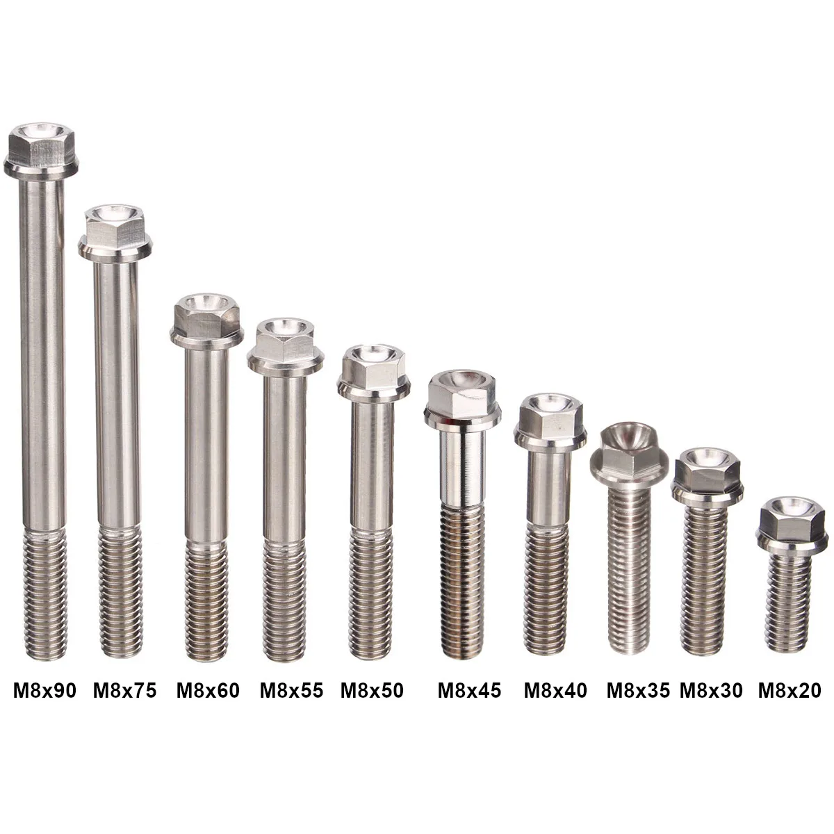 1x M8 титановый Фланец Болт с шестигранной головкой Шаг Винт 20 мм 30 мм 35 мм 40 мм 45 мм 50 мм 55 мм 60 мм 75 мм 90 мм