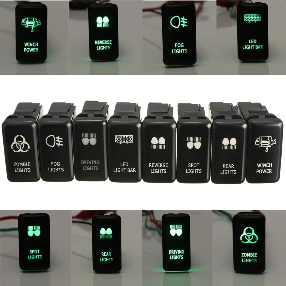 12 В Зеленый светодиод OEM Замена кнопочный переключатель для Toyota Landcruiser Hilux Prado 120 серии 2003 светодиодный 2009 светодиодный свет бар дальнего свет...