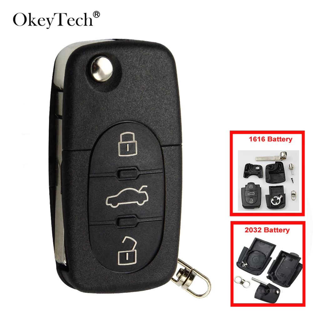 Okeytech Замена для Audi ключ 3 кнопки дистанционного флип ключа автомобиля чехол лезвие для Audi A3 A4 A6 A8 TT Quattro CR2032 Fob пустой
