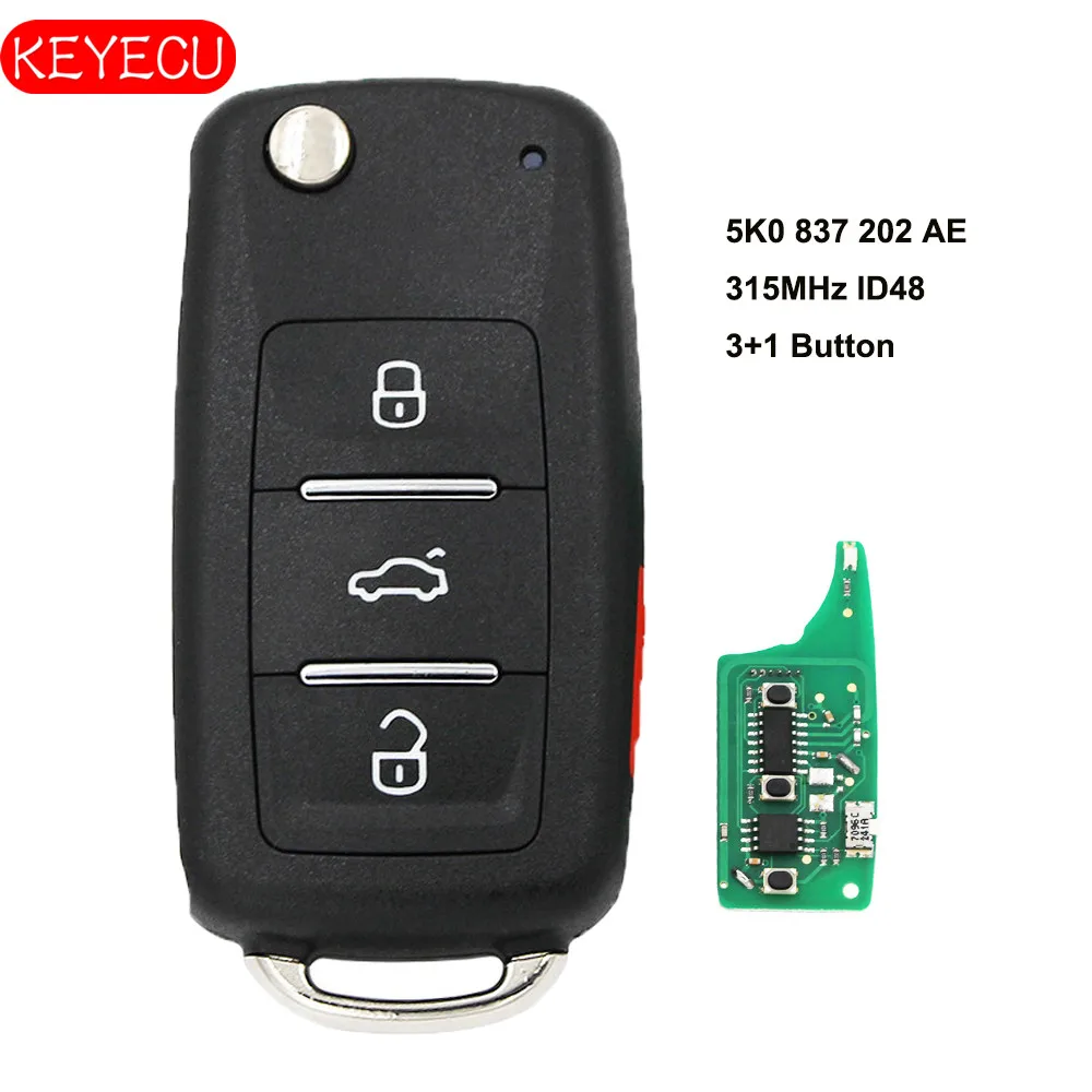 Keyecu удаленное брелок 3 + 1 кнопки 315 МГц ID48 для Volkswagen Beetle Jetta EOS Golf Tiguan, GTI 2011 2012 2013, 5K0 837 202 AE