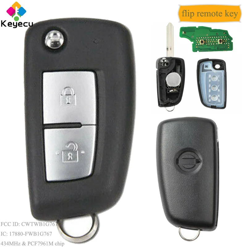 KEYECU удаленный Управление ключи-2 кнопки и 433 МГц & ID46 PCF7946 чип-брелок для Nissan Micra Navara Qashqai FCC, аддитивного цветового пространства: 5WK4 876/818