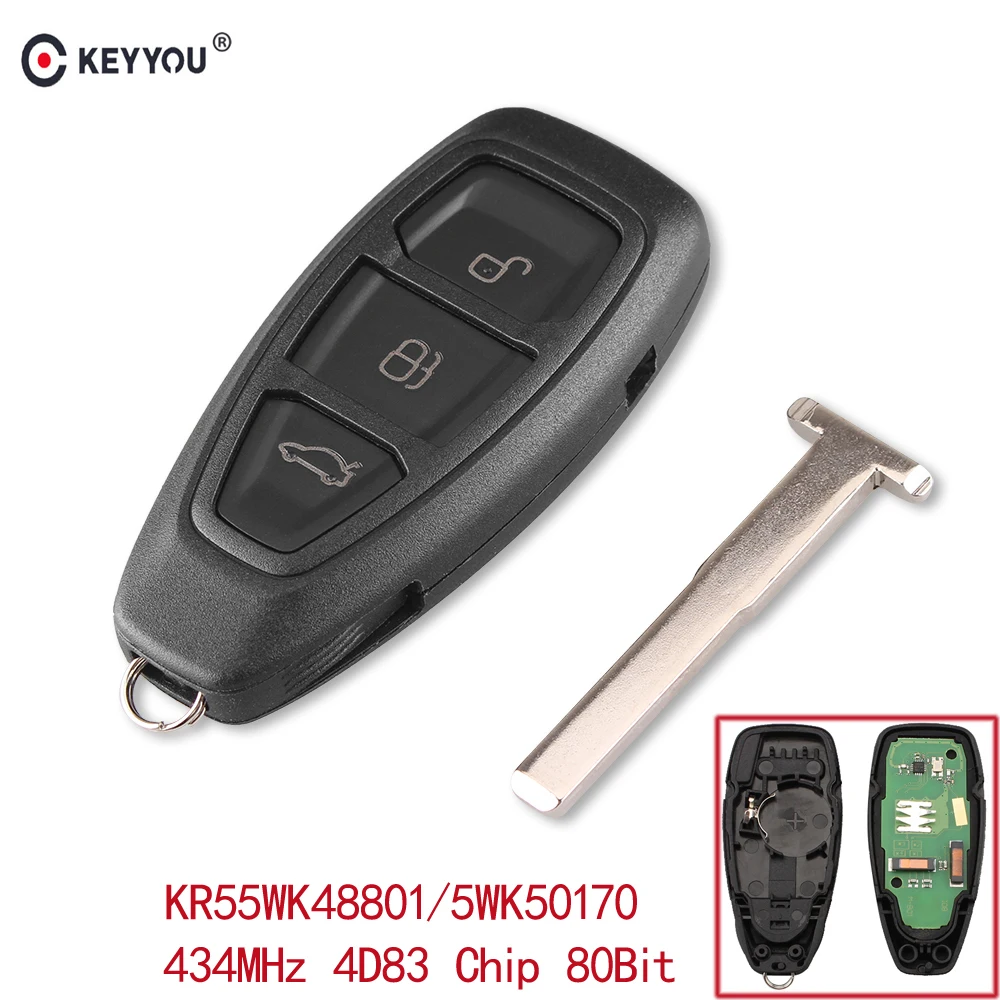 KEYYOU KR55WK48801 434/433 мГц с 4D83 чип-ключ для автомобиля удаленного Управление ключ 3 кнопки для Ford Focus C-Max mondeo Kuga Fiesta B-Max