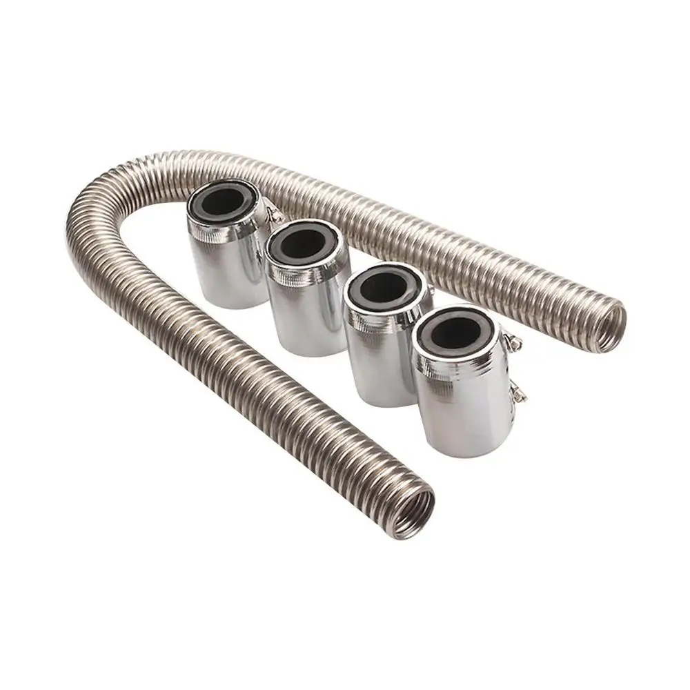 24in Универсальный гибкий хромированный шланг радиатора из нержавеющей стали комплект зажимов колпачки охлаждения двигателя водяная труба ...