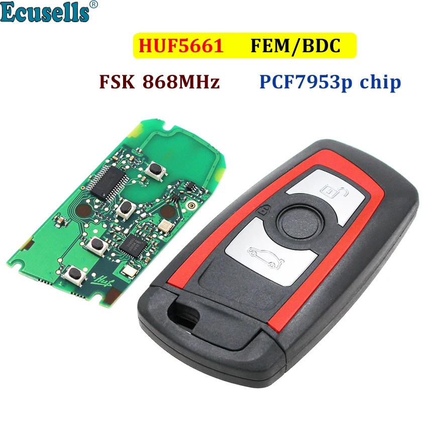 Без ключа 3 кнопки дистанционного брелока FSK 868 МГц HUF5661 для BMW 5 7 F серии F30 F25 F20 2009-2016X5X6 FEM/BDC CAS4 CAS4 + красный