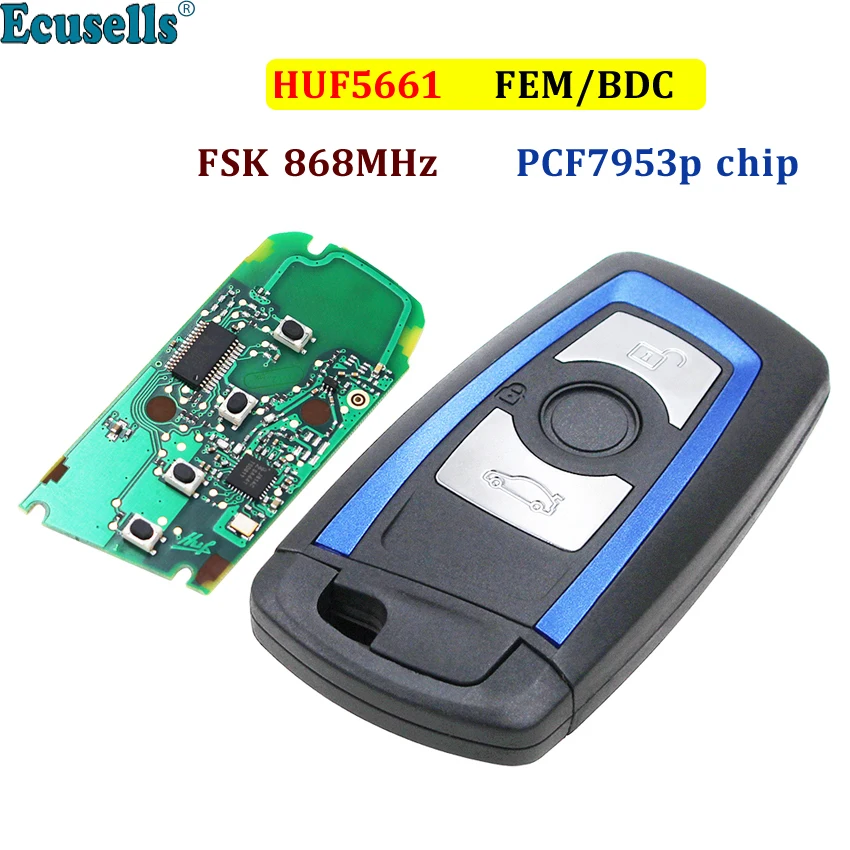 Без ключа 3 кнопки дистанционного ключа 868MHz HUF5661 для BMW 5 7 F серии 2009-2016 FEM/BDC CAS4 CAS4 + синий с вставным ключом
