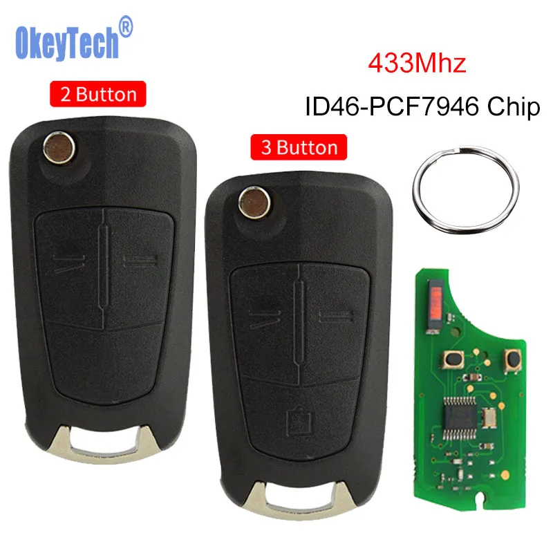 OkeyTech флип пульт дистанционного ключа Fob 3 кнопки 433 мГц PCF7946 чип HU100 лезвие для Vauxhall Opel Vectra C Signum авто Замена ключа