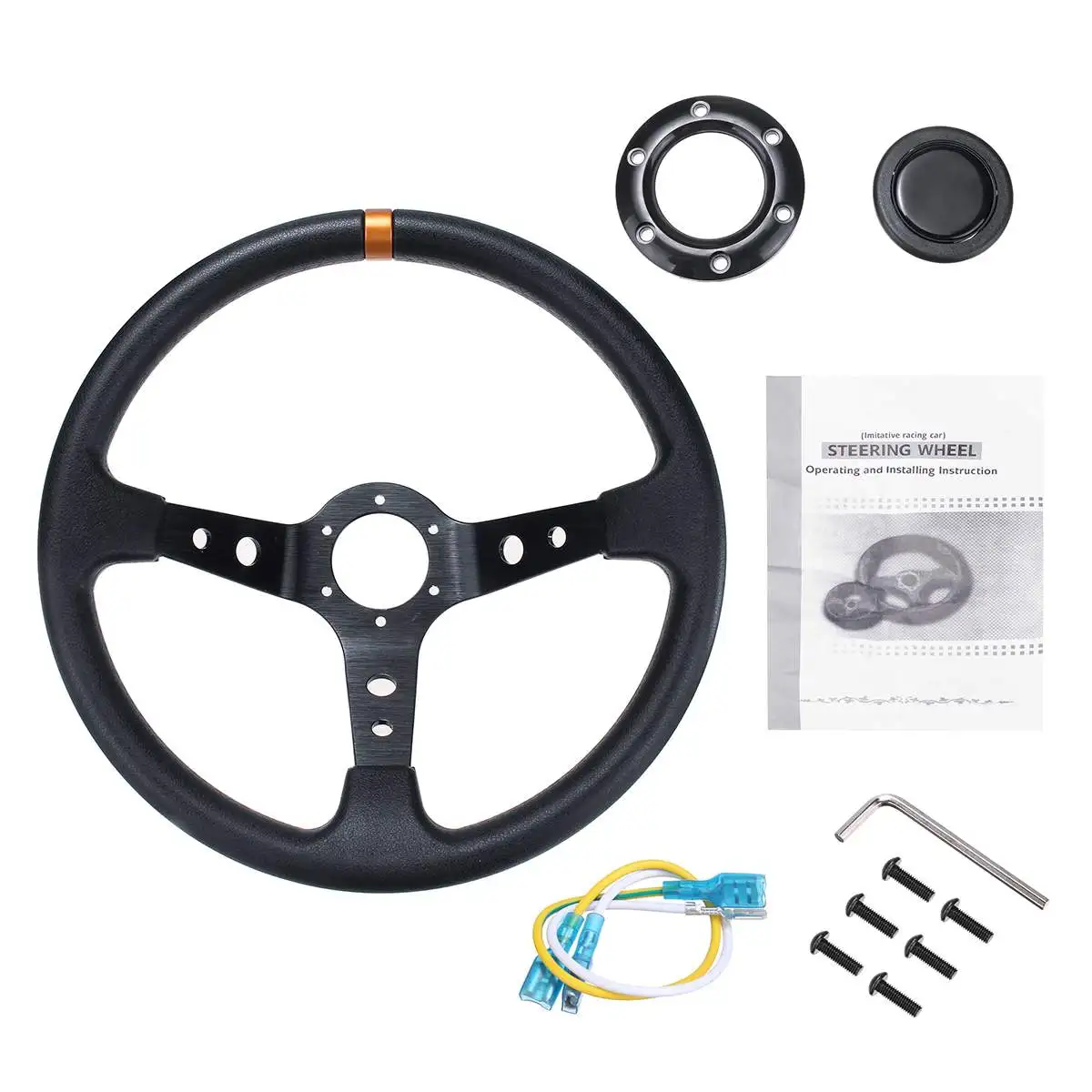 Универсальный 350 мм 14 дюймов PU и алюминиевый сплав Руль для автомобиля, спортивный гоночный руль, дрейфующая глубокая кукурузная тарелка