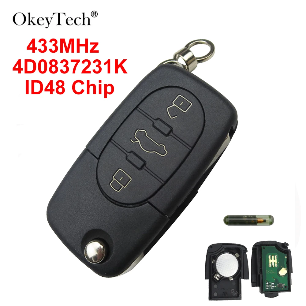 Okeytech 3 кнопки 433,92 мГц ID48 чипа Флип Ключа автомобиля складной брелок удаленного Управление 4D0837231K для Audi A6 TT старые модели
