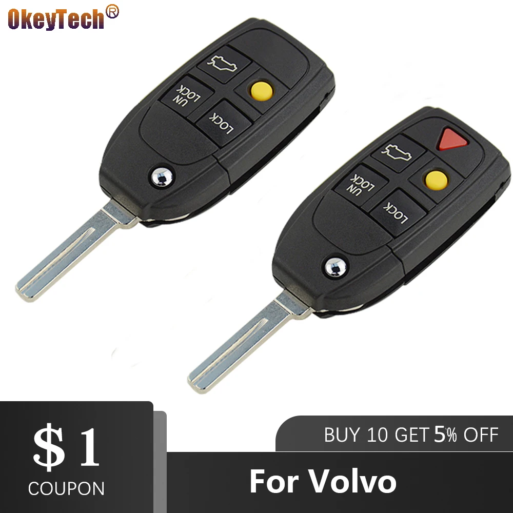 OkeyTech новая Замена 4/5 кнопки дистанционного флип складной Автомобильный ключ чехол оболочка для Volvo XC70 XC90 V50 V70 S60 S80 C30 Fob