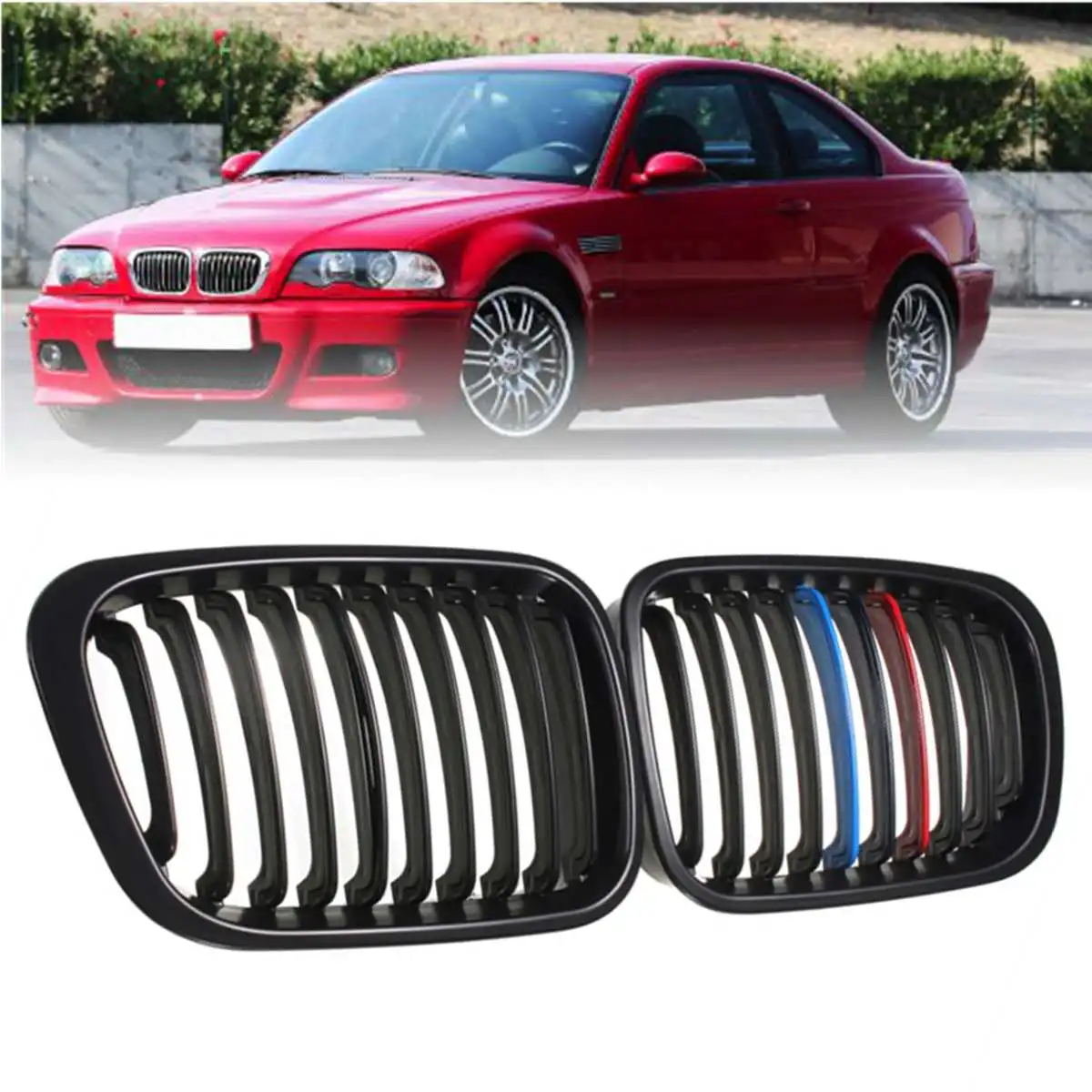 Новая пара матовый черный м-Цвет/черный глянец автомобиля Передняя почек гриль решетки для BMW E46 3 серии 4 Двери Седан 1998 1999 2000 2001