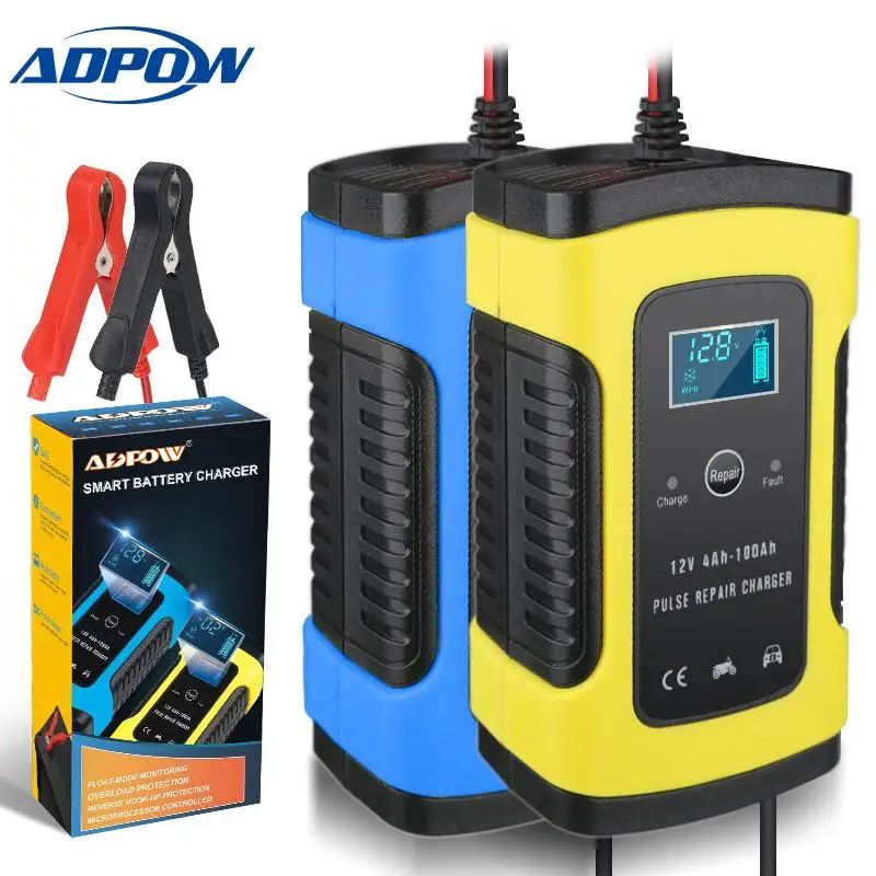 ADPOW автомобильное зарядное устройство для мотоцикла 6A 12 В, интеллектуальная свинцово-кислотная батарея, импульсное зарядное устройство для ремонта, ЖК-дисплей 110 В до 220 В