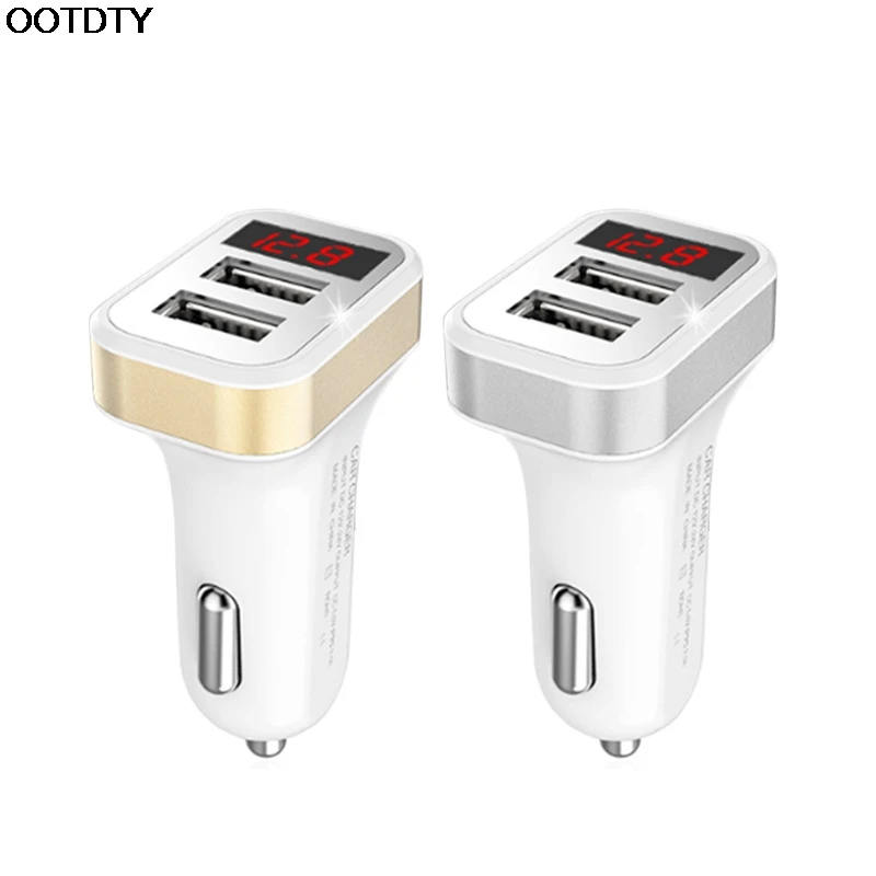OOTDTY автомобиля зарядное устройство цифровой светодио дный дисплей 2.1A Dual USB порты и разъёмы для IPhone IPad Samsung Xiaomi LG huawei зарядки телефона адаптер