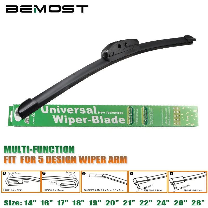 Авто Щетка стеклоочистителя для лобового стекла автомобиля безрамный натуральный каучук 14 "16" 17 "18" 19 "20" 21 "22" 24 "26" 28 "U крючок/боковой штырь/штыковая рукоятка LHD RHD