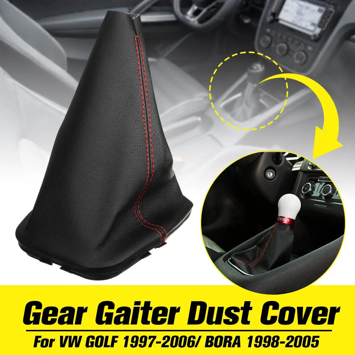 Черный Автомобильный рычаг переключения передач из искусственной кожи, пылезащитный чехол с красной строчкой для VW GOLF MK4 1997-2006 BORA для Jetta ...
